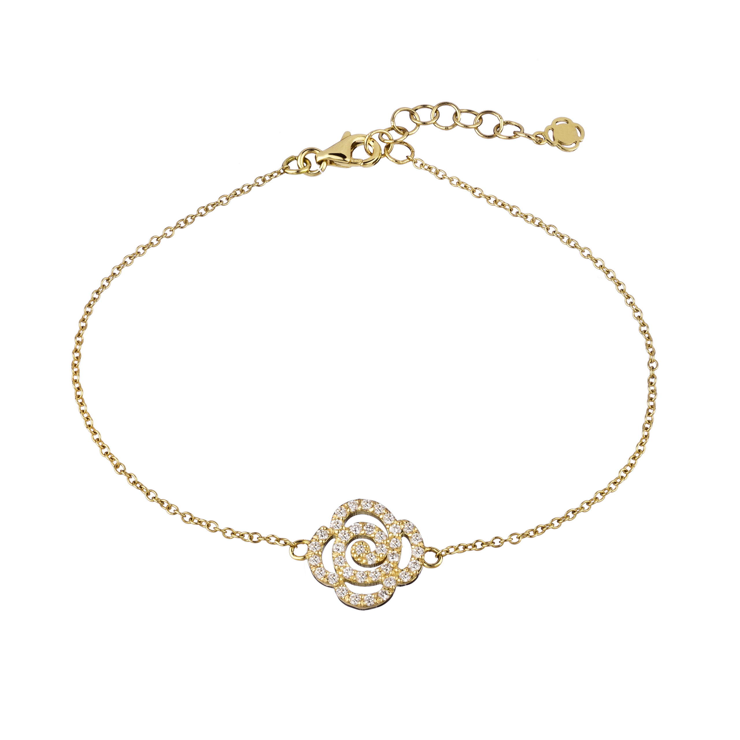 A floral motif inspired by the Taif Rose enhances this bracelet with its discreet luminosity. Natural diamonds outline the petals with delicate brilliance, creating a detail that glows harmoniously with every movement of the wrist. A light, refined jewel designed for those who appreciate subtle and timeless elegance.