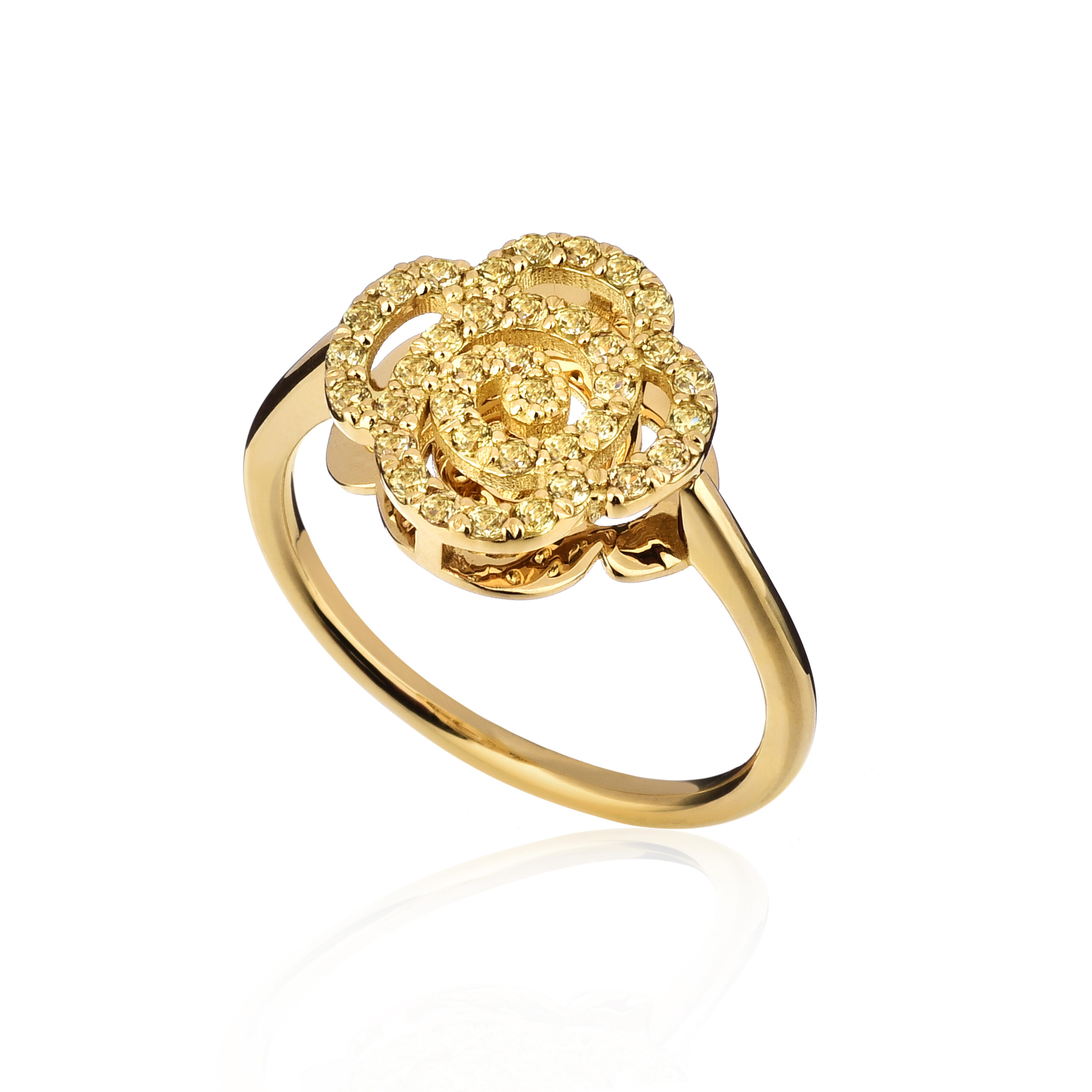 Ispirato alla Rosa di Taif, questo anello interpreta il fiore in una silhouette luminosa e contemporanea. Gli zaffiri gialli disegnano petali delicati, regalando sfumature calde e ricche di carattere. Un gioiello raffinato, pensato per chi desidera un dettaglio distintivo e capace di illuminare ogni gesto.